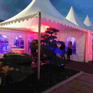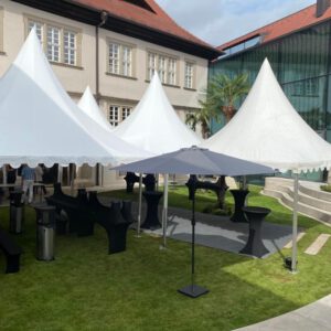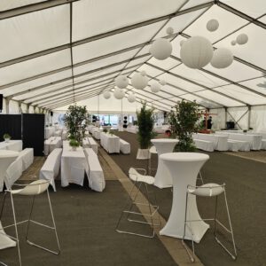 Unser Zeltverleih bietet die ideale Lösung für Veranstaltungen jeder Größe und Art – ob im Freien oder an einem speziellen Ort Ihrer Wahl. Unsere Zelte sind nicht nur funktional, sondern auch äußerst elegant und können an das Branding Ihres Unternehmens angepasst werden, um eine professionelle und einladende Atmosphäre zu schaffen. Von der Planung bis zur Durchführung kümmern wir uns um jedes Detail, damit Sie sich voll und ganz auf das Networking und die Feierlichkeiten konzentrieren können.