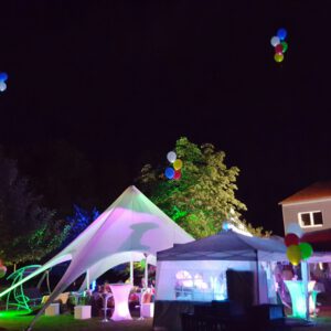 Neben dem Zeltverleih ist die richtige Ausstattung entscheidend für das Gelingen einer jeden Party. Events WAGNER liefert nicht nur die notwendige Infrastruktur wie Bühnen, Tanzflächen und Soundanlagen, sondern auch das gesamte Spektrum an Party-Equipment, um Ihre Gäste zu unterhalten und für Stimmung zu sorgen. Von der professionellen Beleuchtung, die die richtige Partyatmosphäre erzeugt, bis hin zu hochwertigen Sound-Systemen, die Ihre Lieblingshits in bester Qualität wiedergeben – wir sorgen dafür, dass technisch alles reibungslos läuft. Und was wäre eine Party ohne ein umfangreiches Getränkeangebot? Unser Getränkeservice stellt sicher, dass Ihre Gäste mit einer Auswahl an Erfrischungen, Cocktails und anderen Getränken versorgt sind, die keine Wünsche offenlassen. Mit Events WAGNER wird Ihre Party nicht nur zu einem Ereignis, das Ihre Gäste genießen, sondern zu einem, das sie nie vergessen werden.