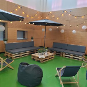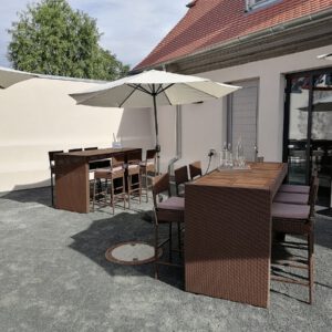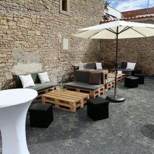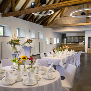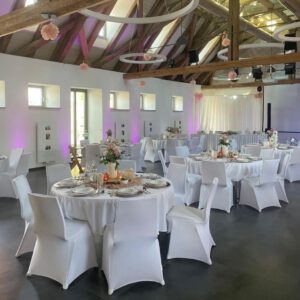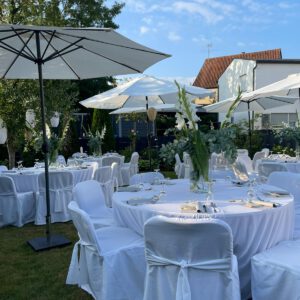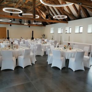 Der Schafhof in Wiesentheid ist auch eine sehr beliebte Location für Hochzeiten und Veranstaltungen in der Umgebung. Hier ist schon Bestuhlung und Tische vorhanden, die passende Tischwäsche und ergänzendes Equipment liefern wir gerne dazu. Ob weiße oder schwarze Husse und bodenlange Tischdecken oder auch mit rustikalen Stühlen – Crossback braun oder weiß. Unsere Loungemöbel machen den Außenbereich besonders gemütlich.