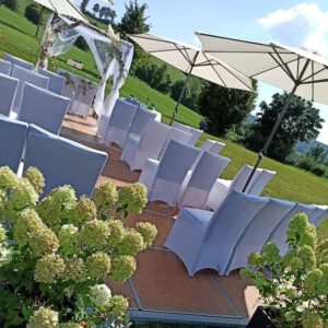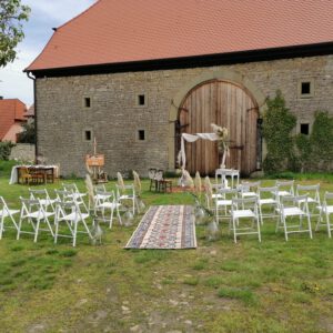 Immer stärkere Beliebtheit erfreuen sich freie Trauungen, mitten in der Natur. Ob auf dem Frankenblick bei Abtswind, in den Wiesenbronner Weinbergen, in Großlangheim auf der Burgruine, auf dem Schanberg oder auf der Wiese vor dem Schafhof. Es sind immer unvergessliche Momente. Gerne statten wir diese besonderen Anlasse mit unserem Equipment aus, ob weiße Holzklappstühle, Crossback-Stühle im weiß oder braun oder mit Bierbänken und weißen Hussen, es ist für jeden etwas dabei. Optional organisieren wir auch den passenden Sektempfang dazu.