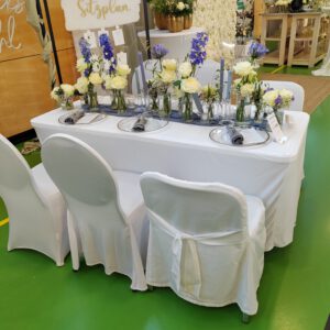 Viele wunderschöne Dekorationsbeispiele unseres Equipments durften wir auf der 1. Wiesentheider Hochzeitsmesse im Februar 2024 ausstellen. Blumen waren von Blumen Lang aus Wiesentheid und die Dekoration von Wunderwerk.events aus Schwanfeld – lieben Dank für die perfekte Zusammenarbeit. Hier ein paar Anregungen für kommende Hochzeitspaare oder auch für Events aller Art: